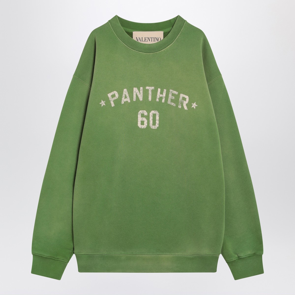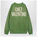 Green cotton crew neck sweatshirt by Valentino Garavani, featuring a Chez Valentino print on the front, ribbed cuffs and hem.