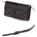 black calf leather logo plaque adjustable waist strap foldover top with press-stud fastening partitioned compartment internal card slots internal zip-fastening pocket 1DR wallet on chain