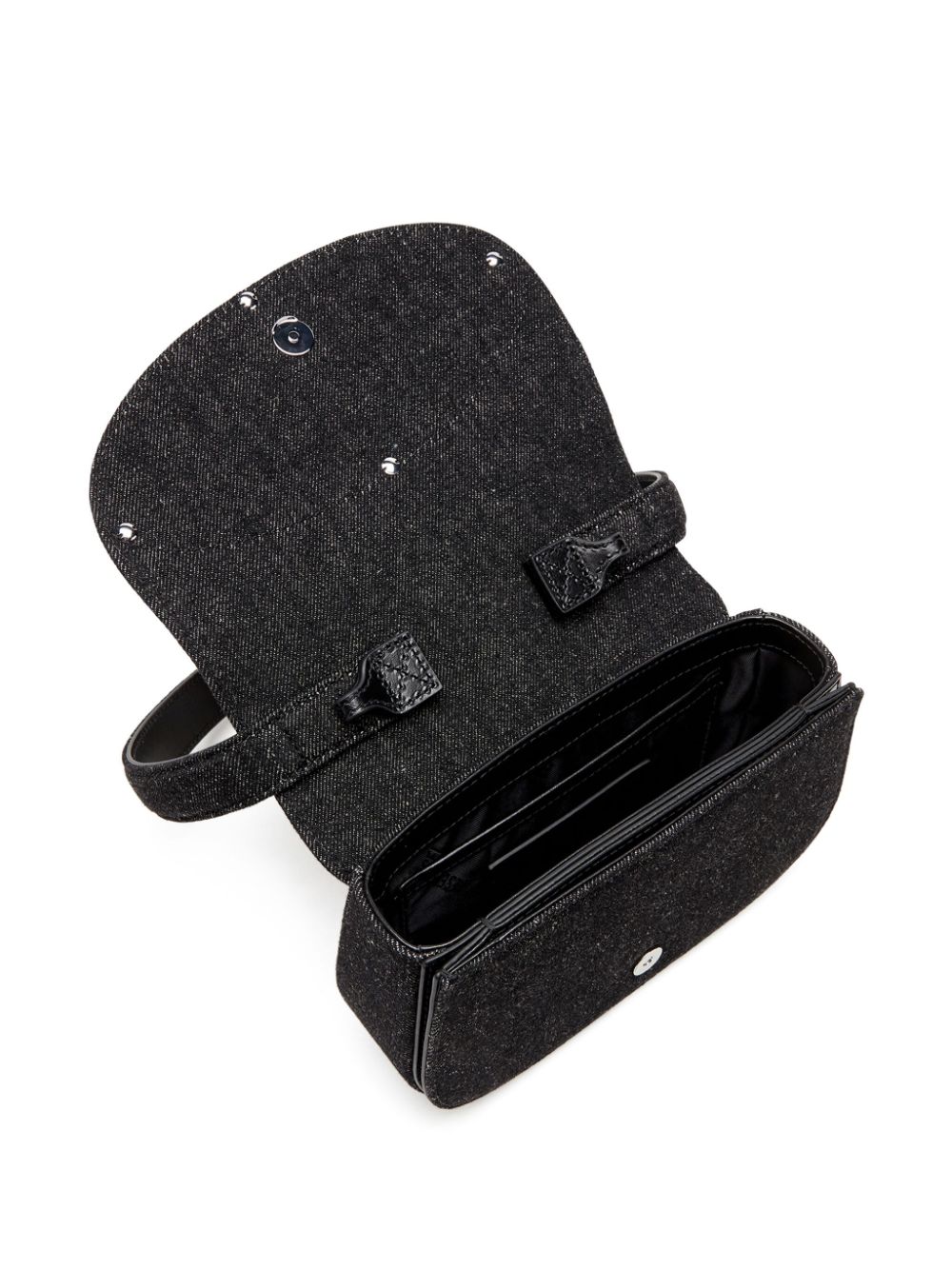 black canvas/leather denim tonal design foldover top with magnetic fastening single flat top handle adjustable detachable shoulder strap Oval D logo plaque main compartment internal slip pocket internal logo patch This piece comes complete with a protective dust bag. 1DR denim shoulder bag