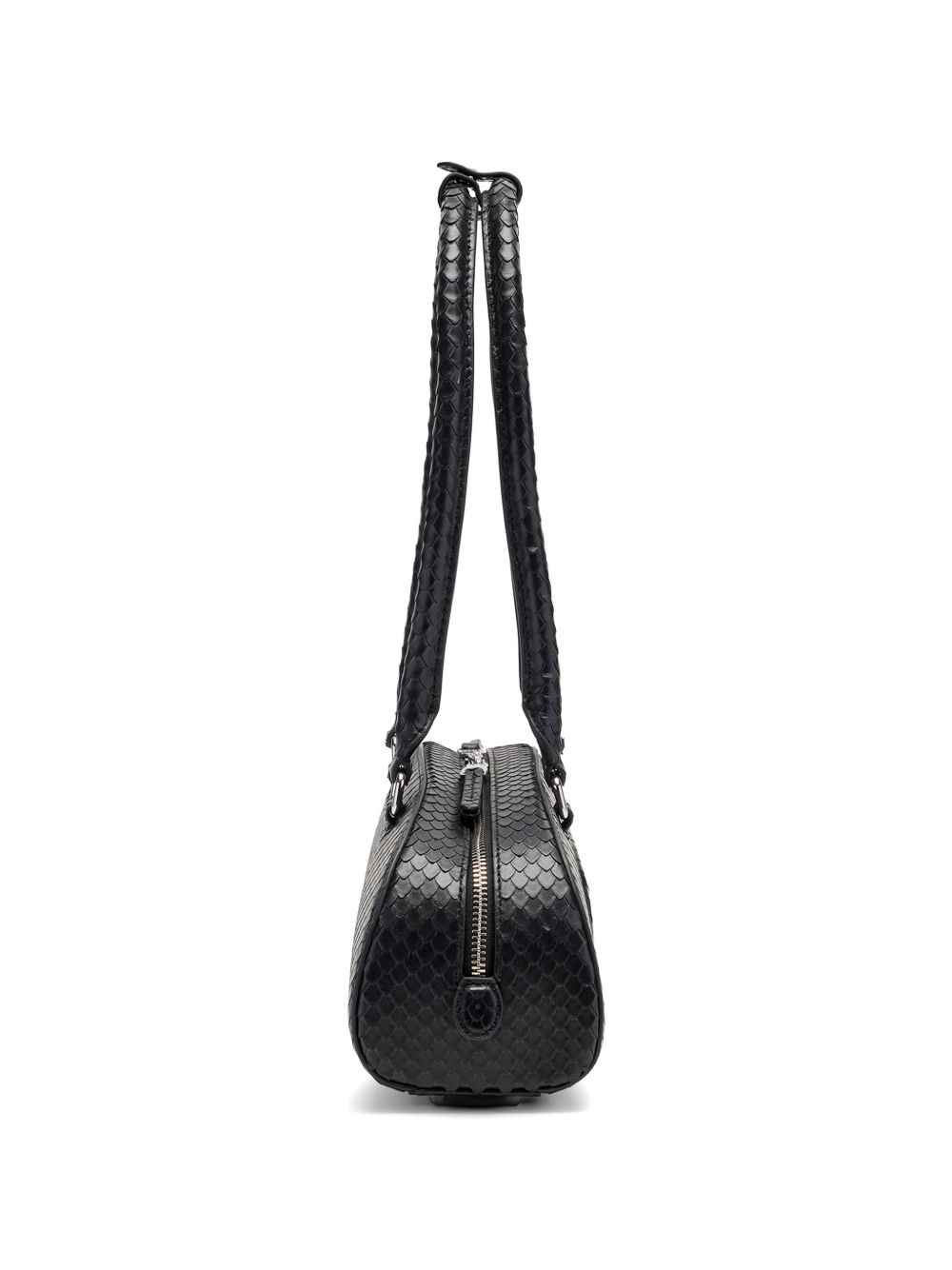 black embossed snakeskin effect Oval-D logo long rolled handles two-way zip fastening main compartment 1DR Dome shoulder bag