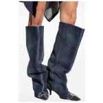 blue pointed toe slouchy design pull-on style Venus denim boots
