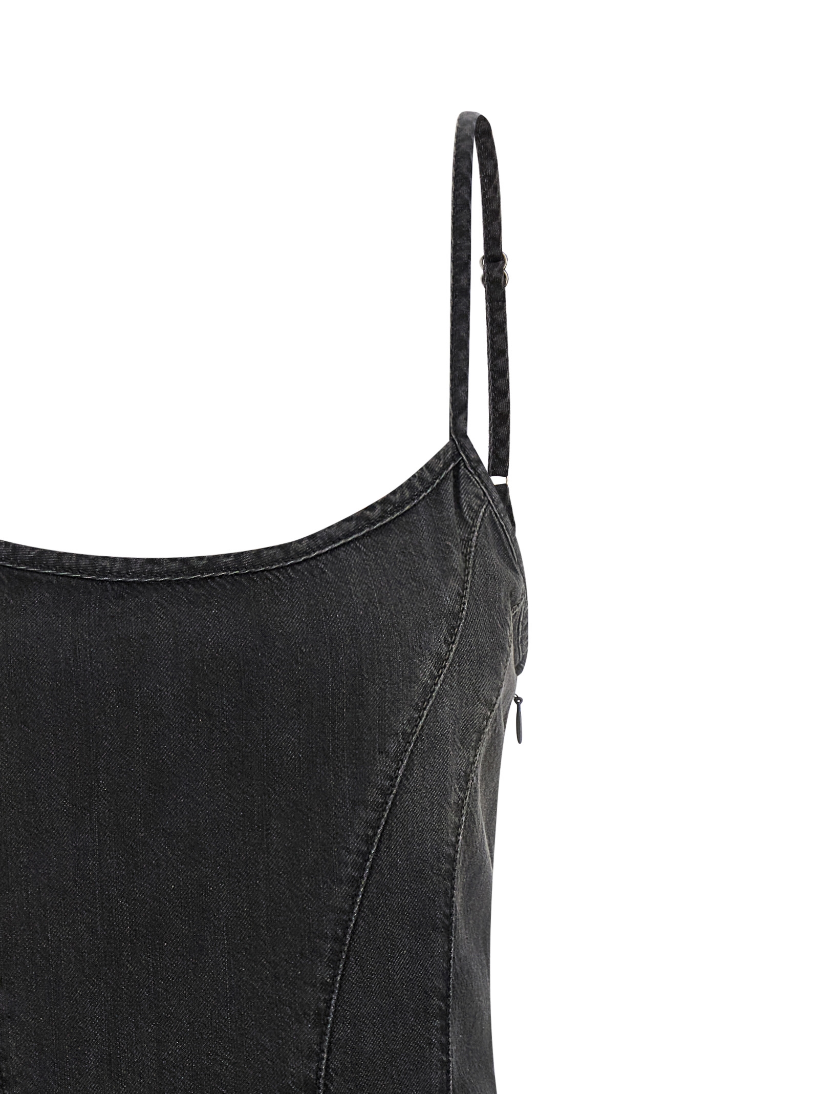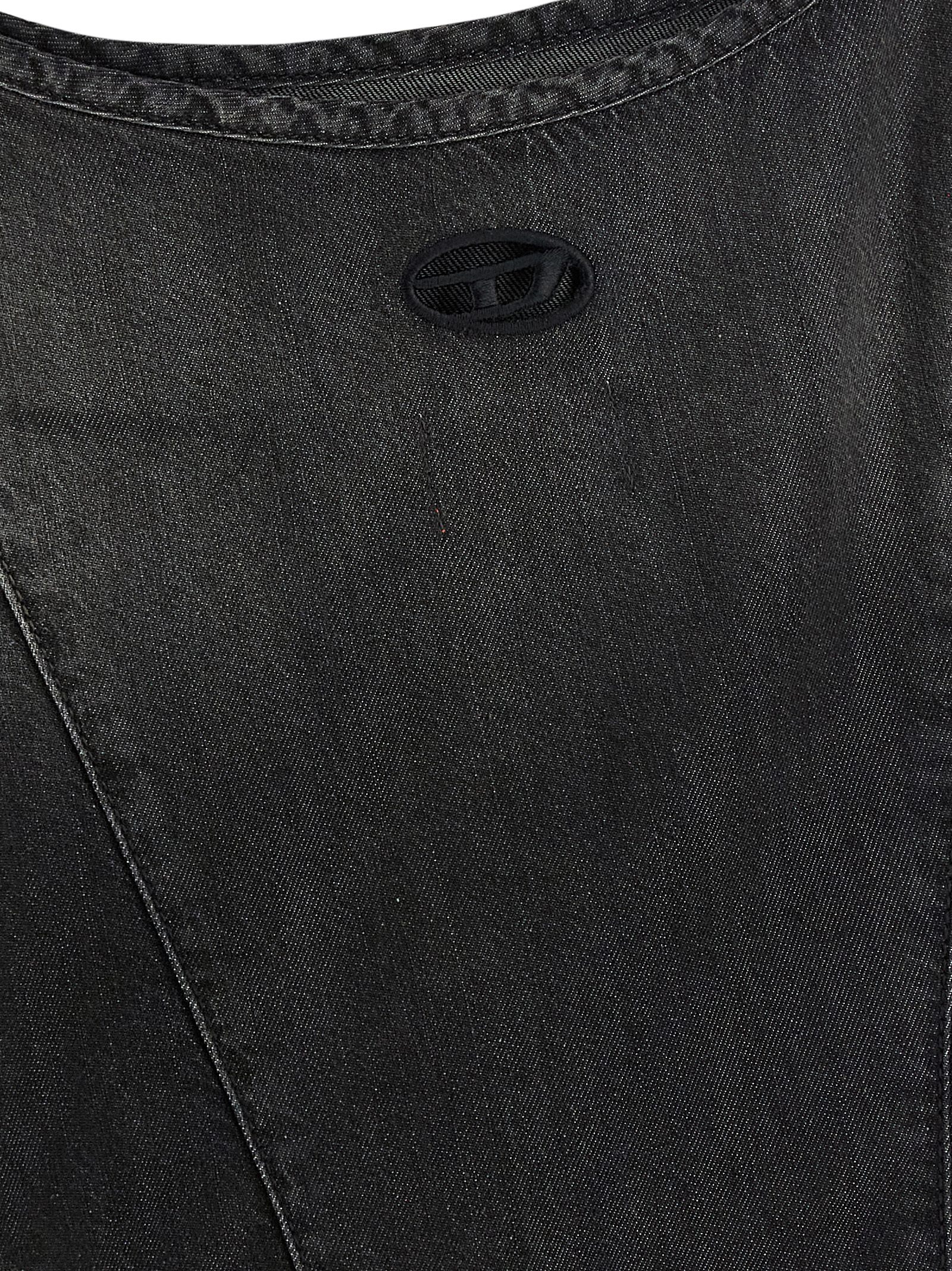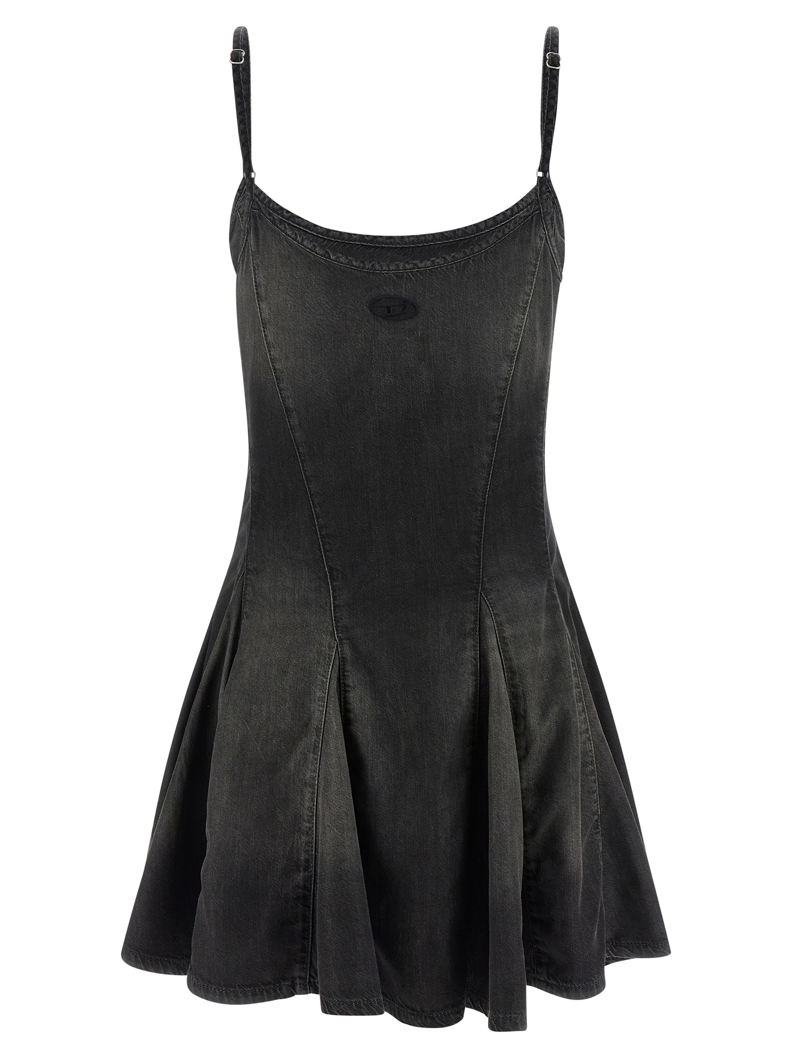 Mini ‘De-Spoky-S’ dress in cotton denim and TENCEL™ Lyocell with stonewashed treatment, panel construction, full skirt, thin adjustable straps, round neckline at the front and back, Oval D cut-out logo embroidery at the back, side zip closure.