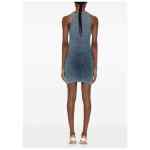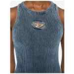 blue ribbed knit logo appliqué round neck sleeveless slim fit Cotton mini dress