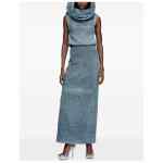 ocean blue side zip fastening distressed effect high-waisted long length Denim midi skirt
