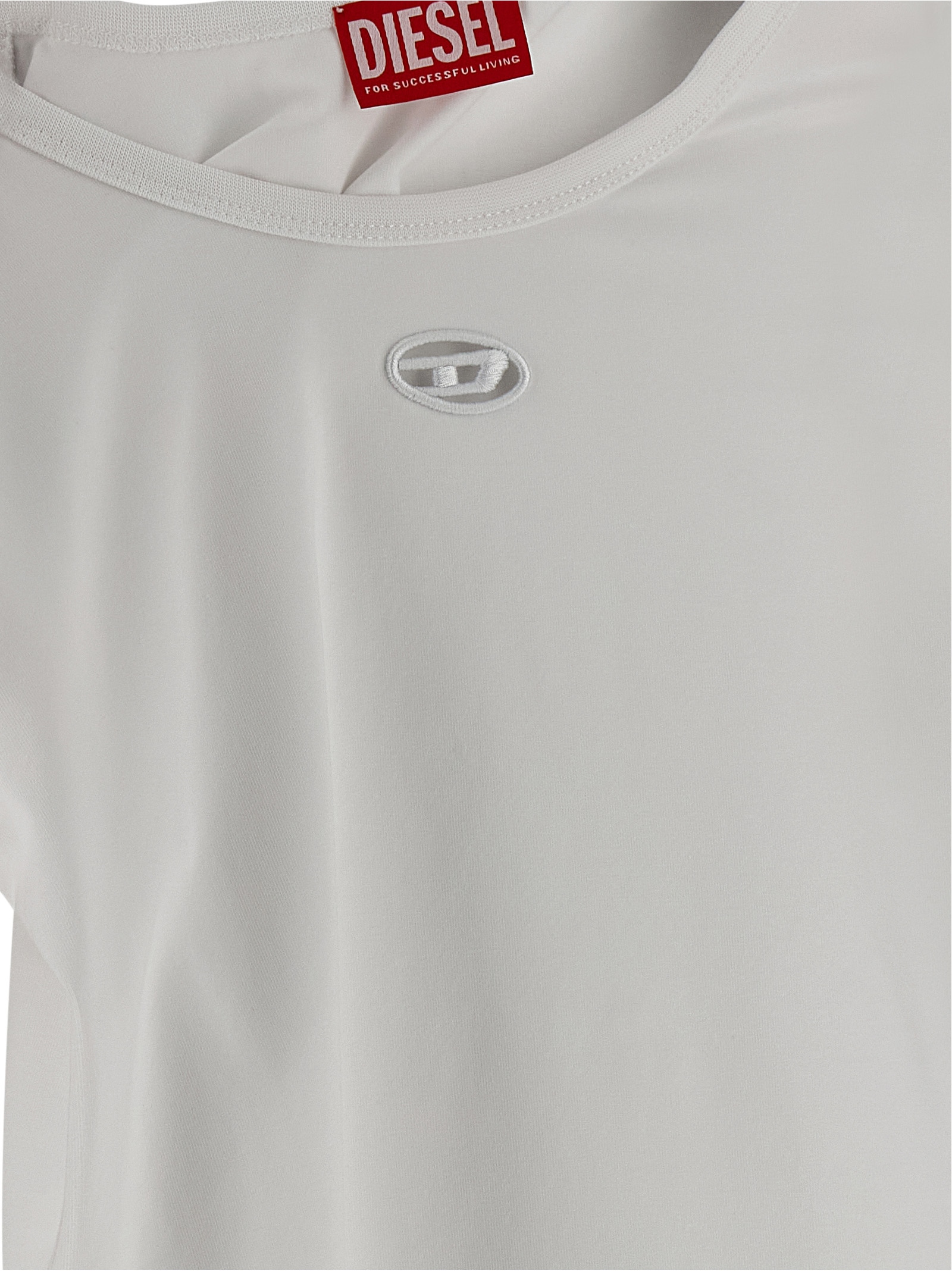 ‘T-Angie-Od’ stretch cotton jersey t-shirt with front laser-cut Oval-D embroidery, round neckline, short sleeves.