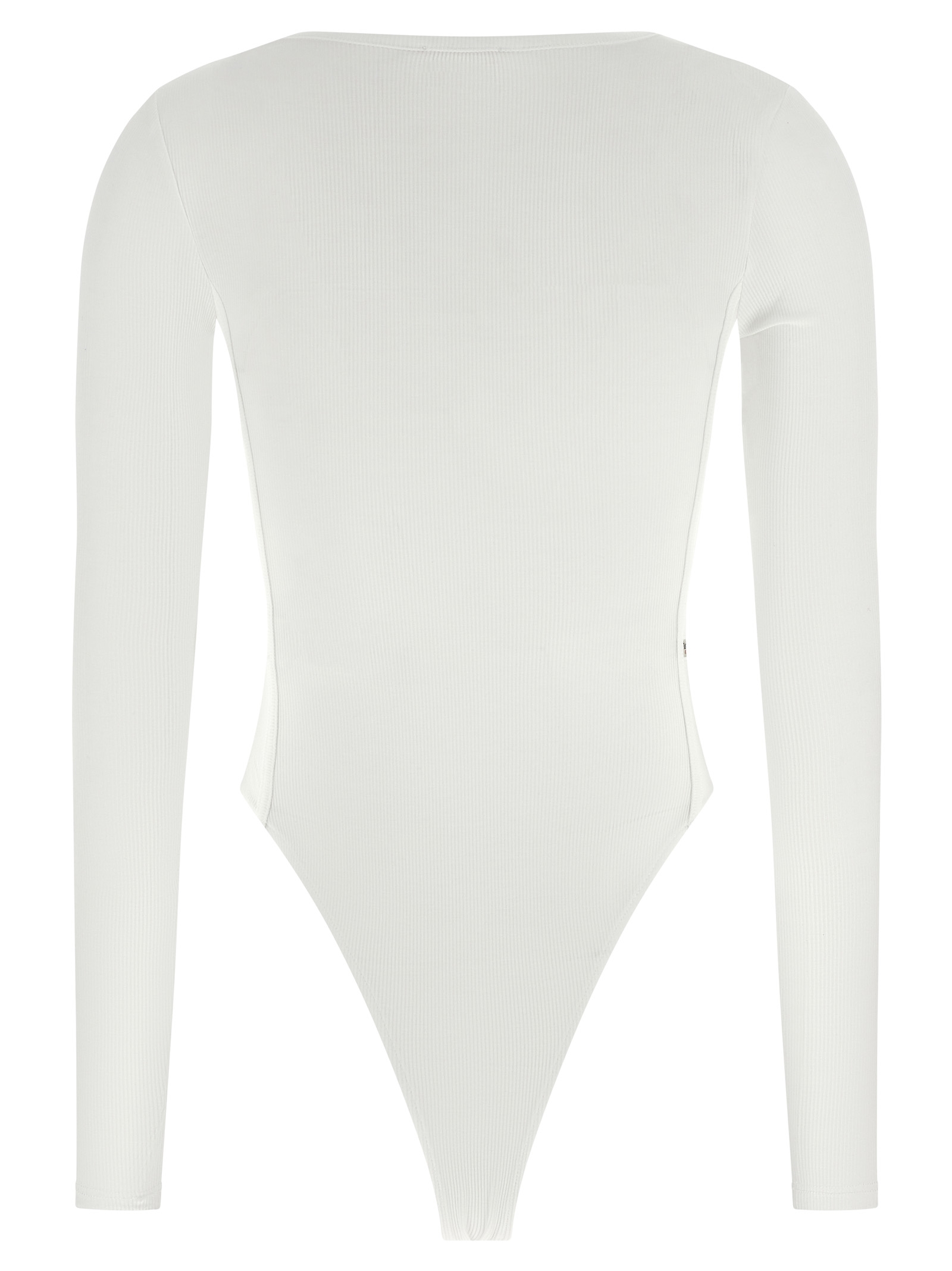 ‘T-Bodyn’ bodysuit in ECOVERO™ stretch viscose blend, side logo patch, wide round neckline on the front, long sleeves, thong cover with high leg, snap buttons on the hem.
