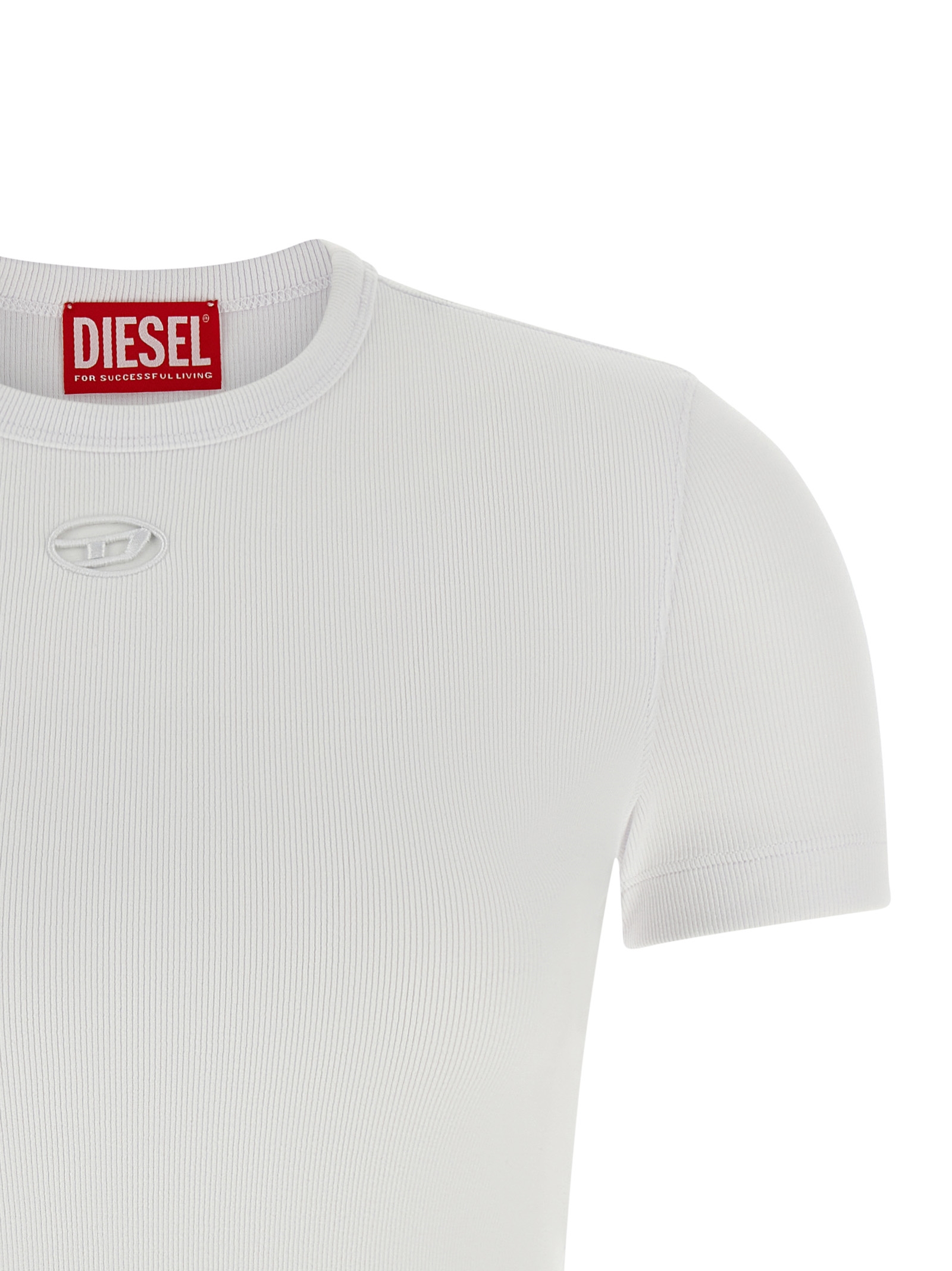‘T-Ribber-Od’ ribbed stretch cotton t-shirt, front Oval-D laser-cut embroidery, crew neck, short sleeves.
