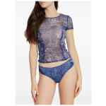 blue denim print short sleeves metal detail round neck seam detail Printed t-shirt
