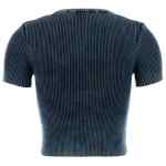 blue ribbed knit cut-out detail short sleeves round neck Logo cotton t-shirt