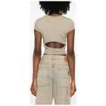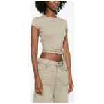 light beige tonal logo detail tie at the waist round neck short sleeves Cotton t-shirt