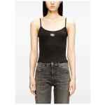 black thin straps round neckline metallic logo Logo cotton tank top