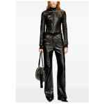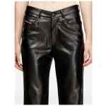 black coated fabric tonal piping five pockets V-shaped fornt logo detail Faxu leather trousers