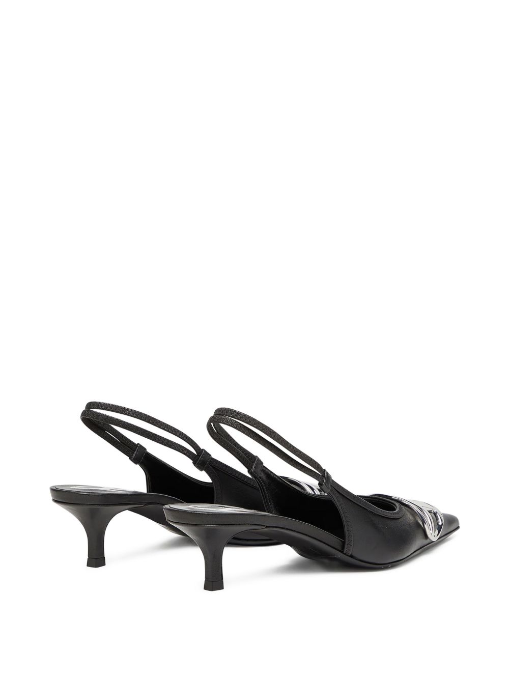 black ankle strap branded insole pointed toe kitten heel Venus leather pumps