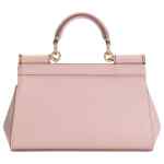 powder pink top handle gold-tone hardware logo plaque internal slip pocket magnetic fastening Sicily small leather handbag
