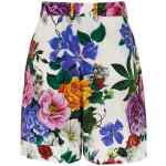 ‘bouquet’ print cotton bermuda shorts, Wide leg with turn-up, Zip and button closure, Stretched pleat, Pockets.