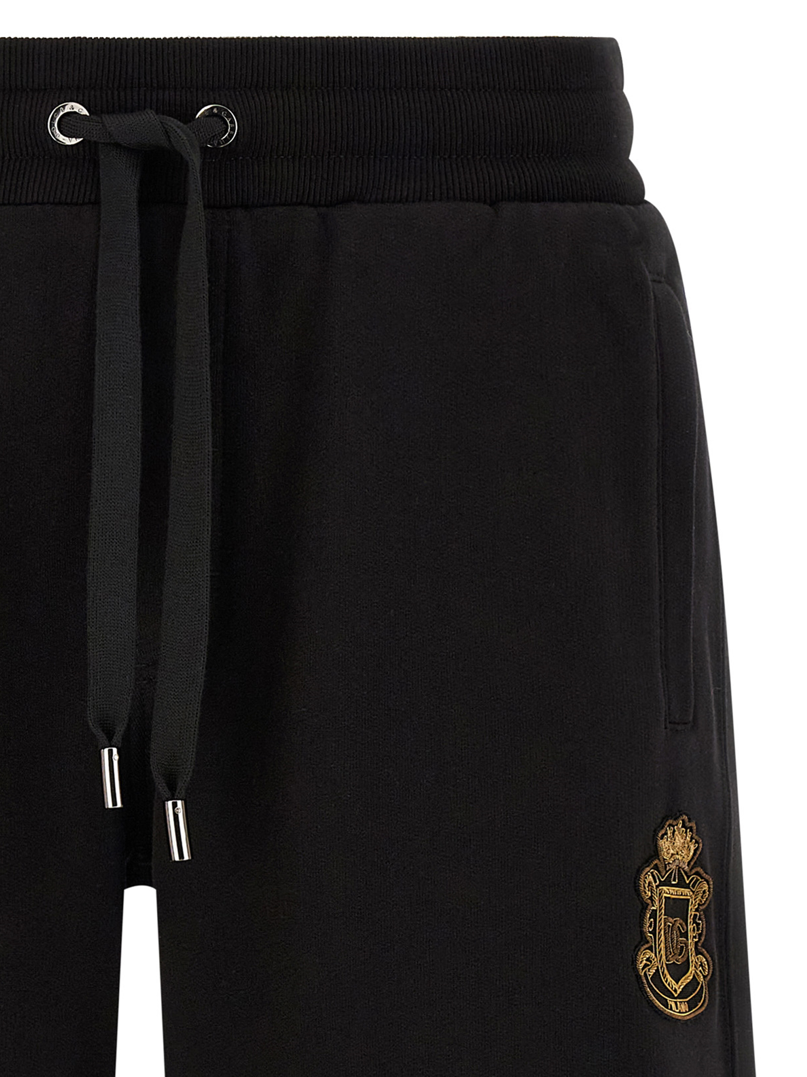 Brushed cotton bermuda shorts, Front embroidered crest, Drawstring elastic waistband, Trompe l’oeil flap, Wide leg, Pockets.