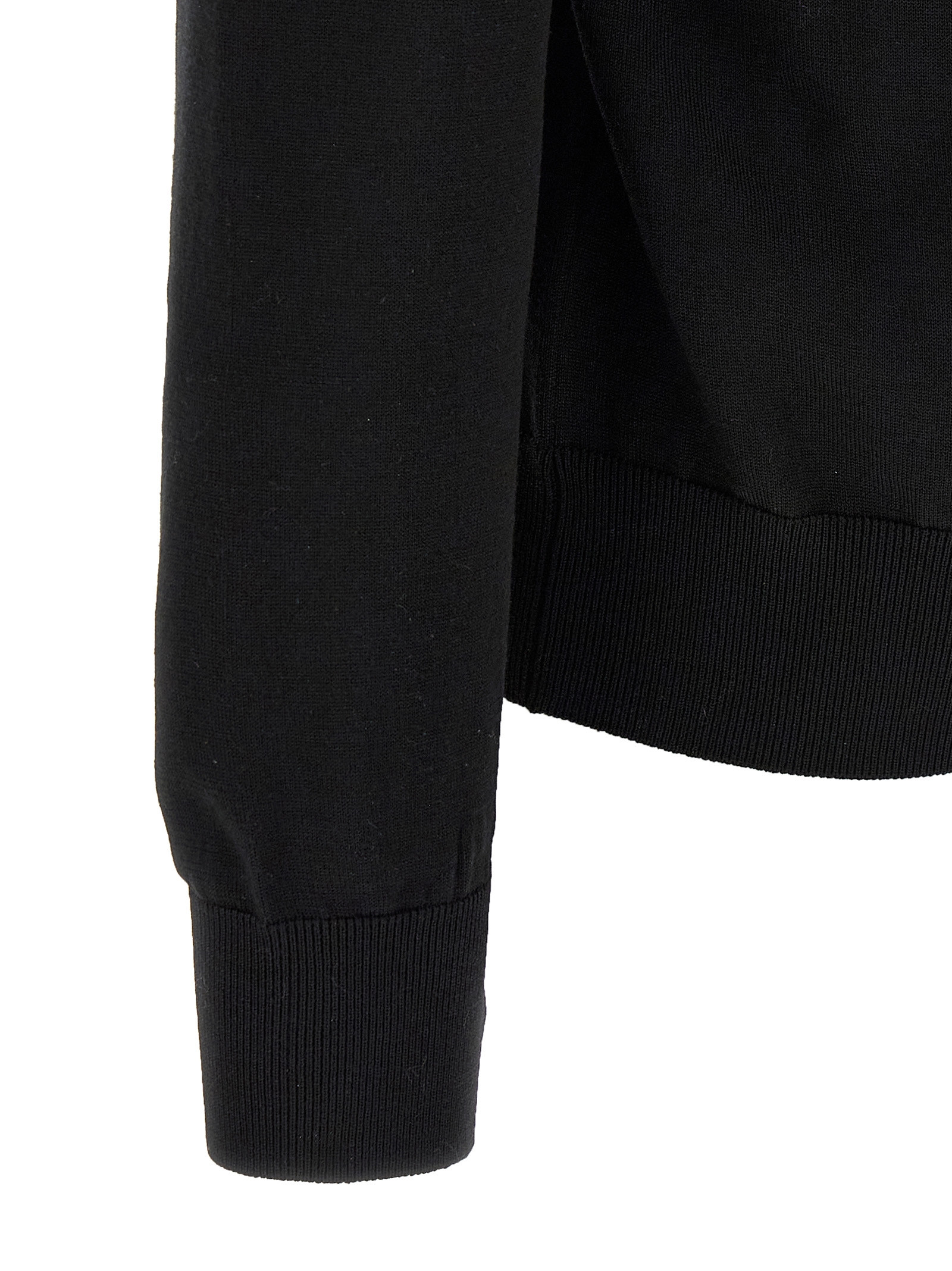 Fine virgin wool sweater, Front heraldic crest patch, Crew neck, Long cuffed sleeves, Band on the hem. Size and Fit – true to size fit
