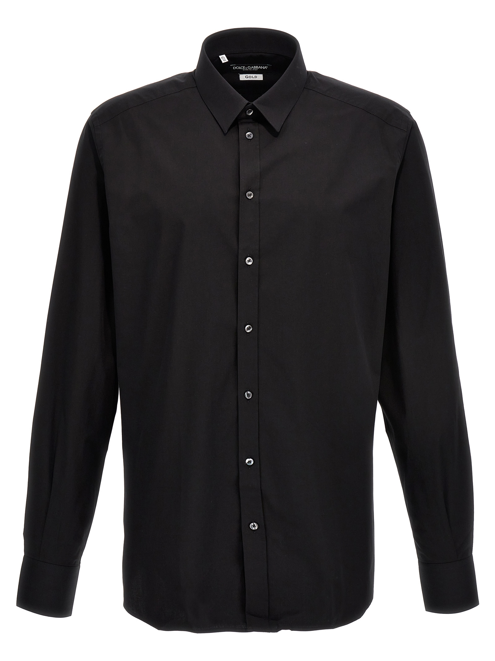 DG Essential stretch cotton shirt with button closure, long cuffed sleeves.