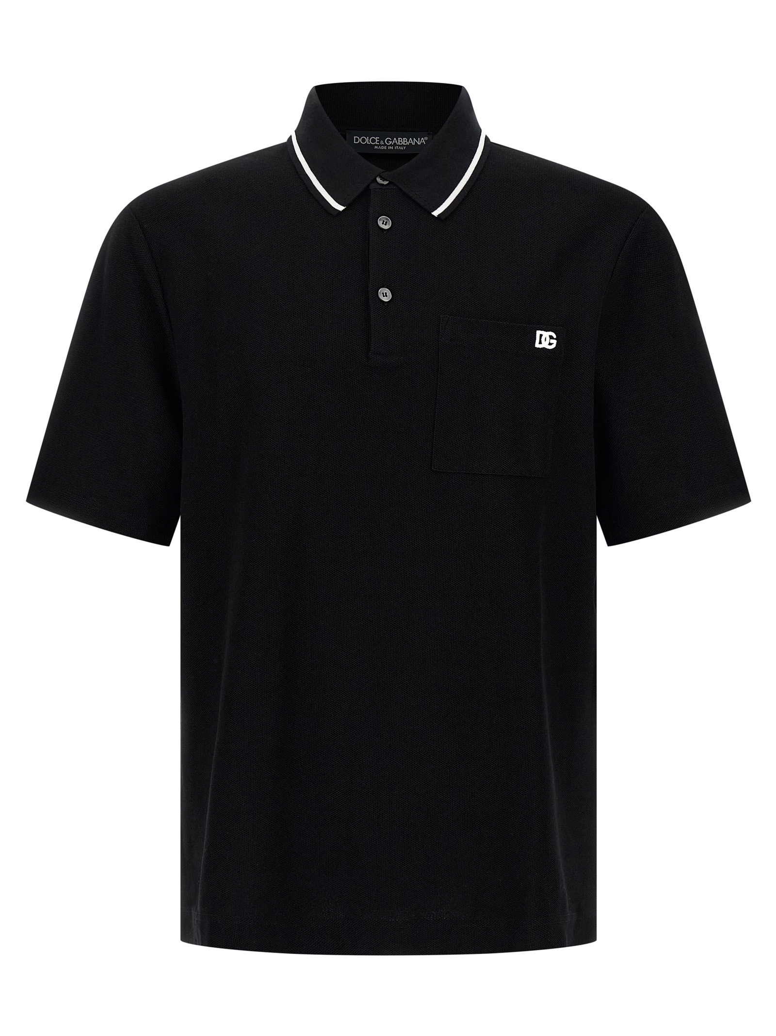 Piqué cotton polo shirt, shirt collar, three-button closure, logo embroidered pocket, side splits.