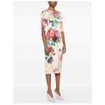 rear slit Flower print midi dress