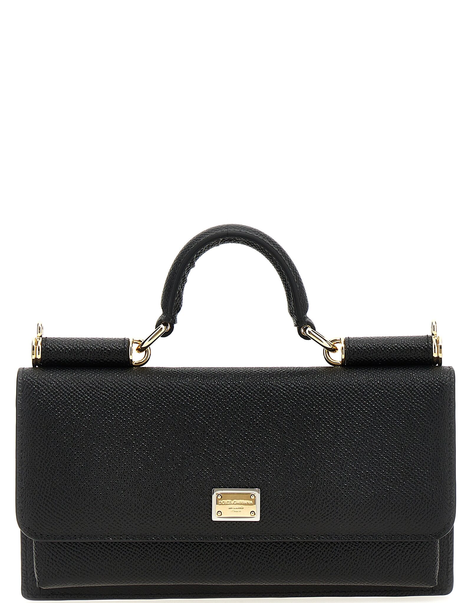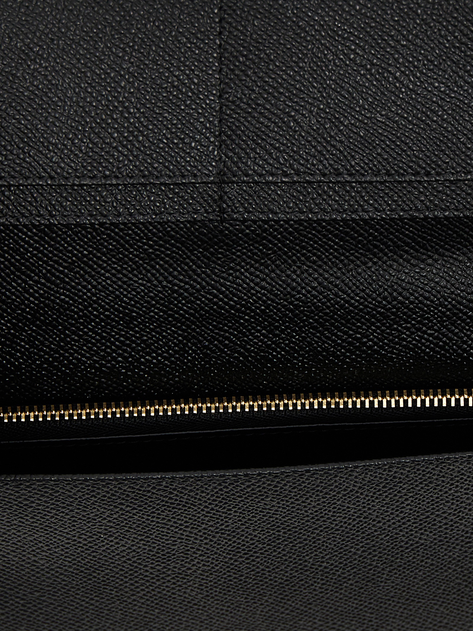 Iguana-print leather handbag with magnetic flap closure, Fixed top handle, Front logo plaque, Removable chain shoulder strap.