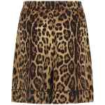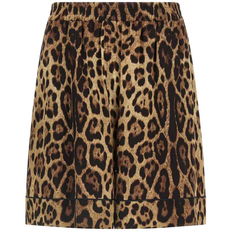 Leopard print silk shorts, Featuring black piping, An elastic waistband, Pockets.