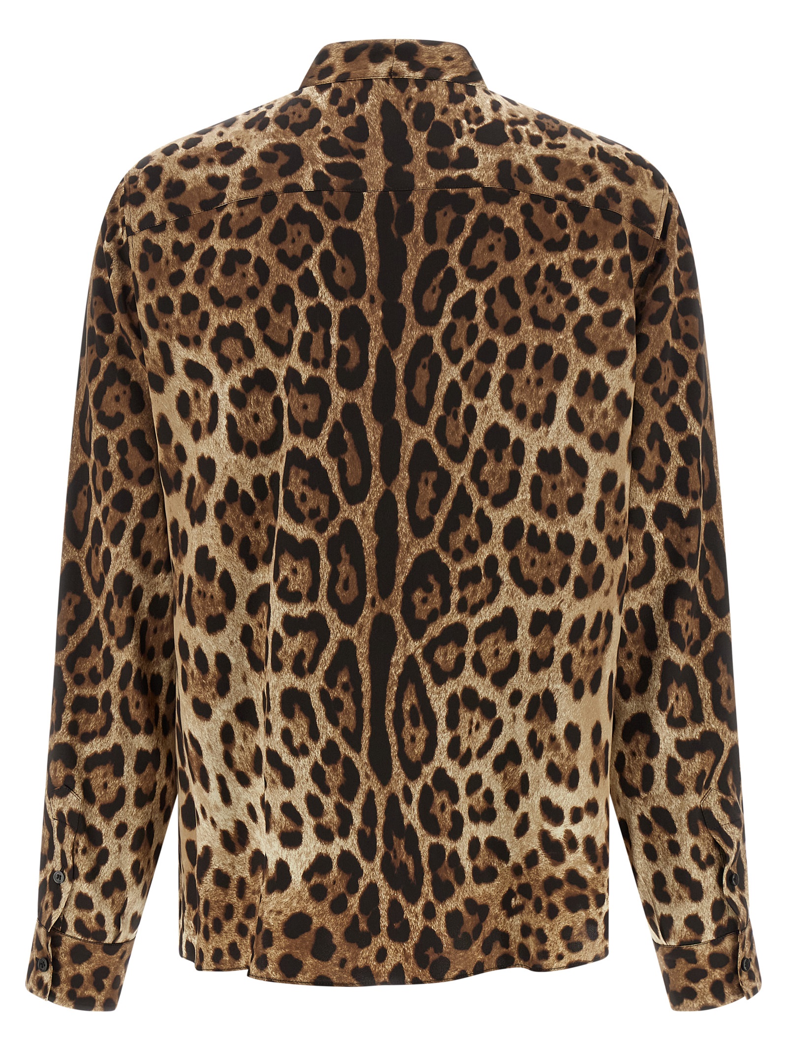‘Leopardo’ print satin shirt, lavallière collar, concealed front button closure, long cuffed sleeves, rounded hem._x000D_