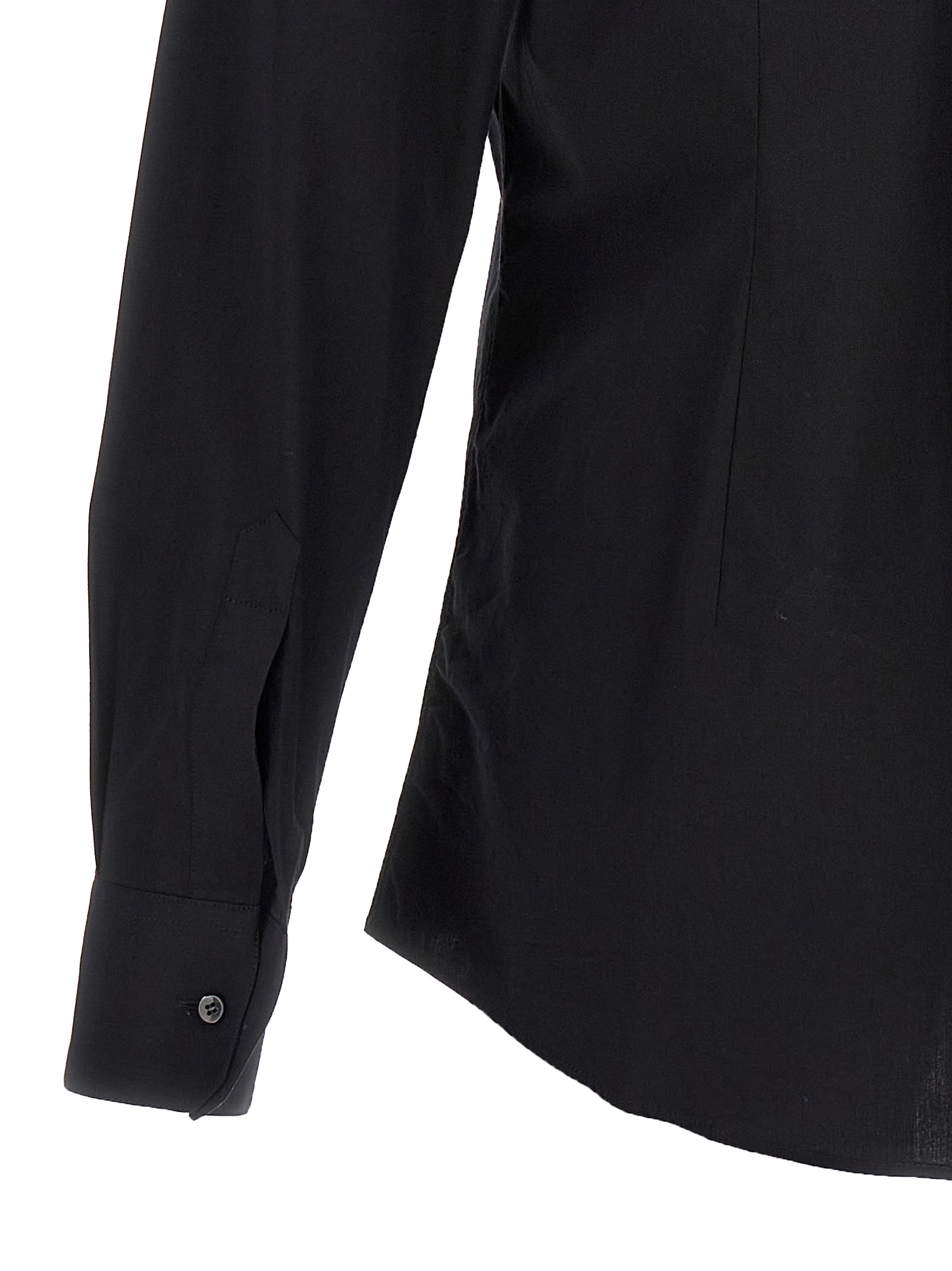 Stretch cotton shirt, front pocket with logo embroidery, button closure, long cuffed sleeves.
