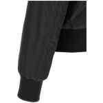 Lightly padded nylon bomber jacket with tone-on-tone ribbed stretch knit details, Metal logo plaque and front zip closure, Pockets, Long sleeves with cuffs and dropped shoulder, And headband. Size and Fit – true to size fit