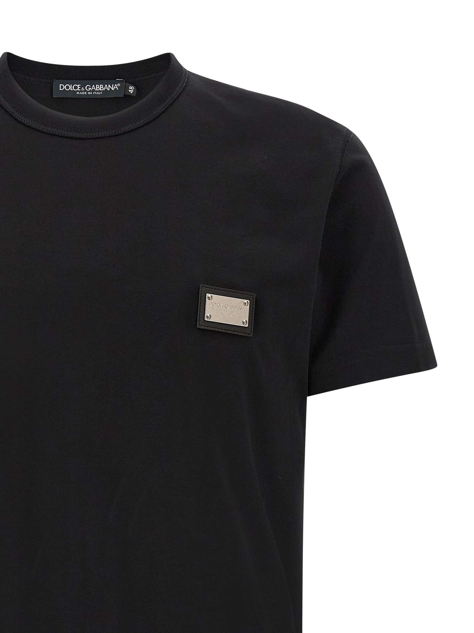 Cotton jersey t-shirt, Leather patch with front metal logo tag, Crew neck, Short sleeves.