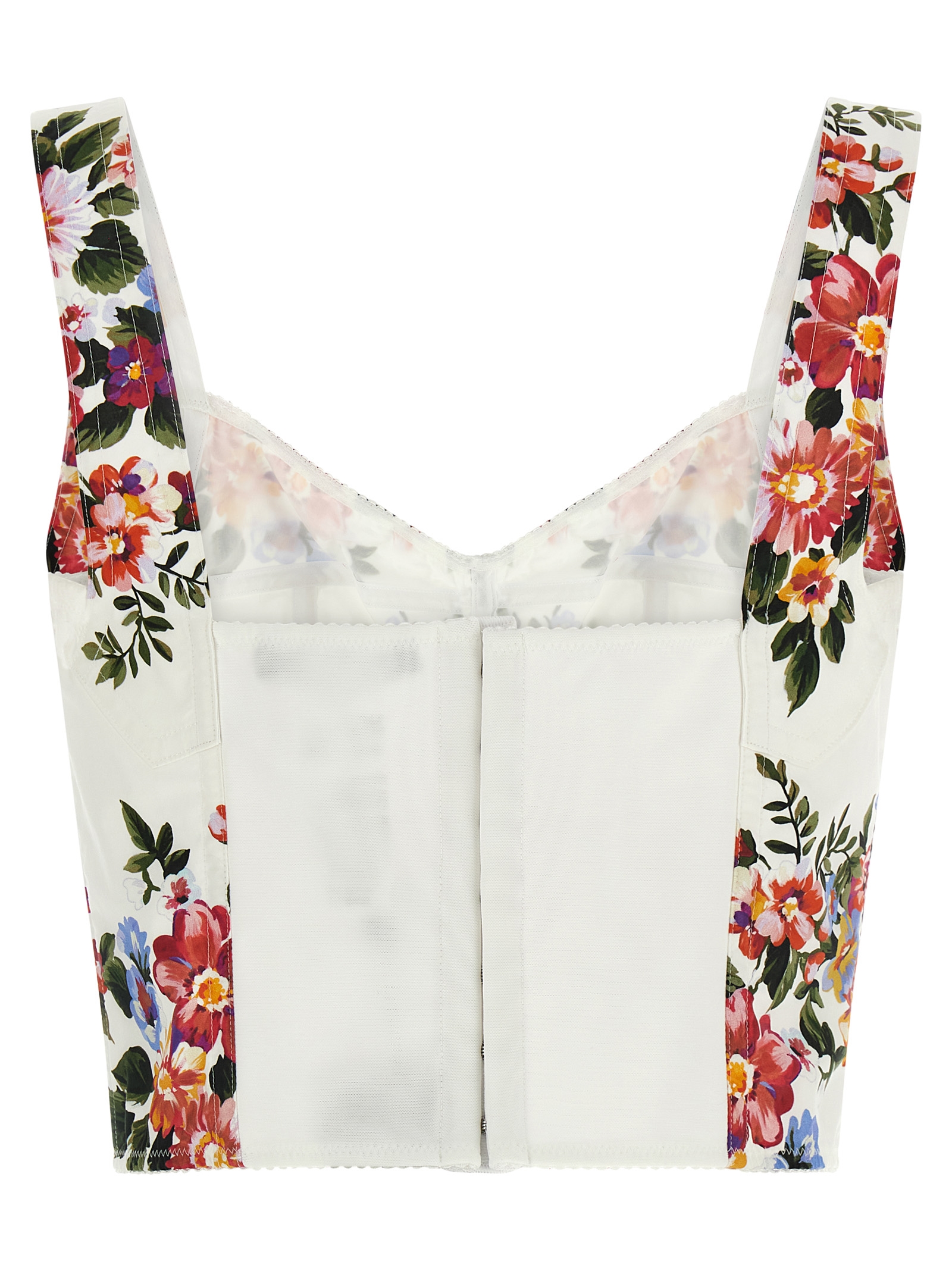 All over ‘mazzo di fiori’ print cotton top with sleeveless bustier style, Shoulder straps, Back closure with elastic insert and hooks.