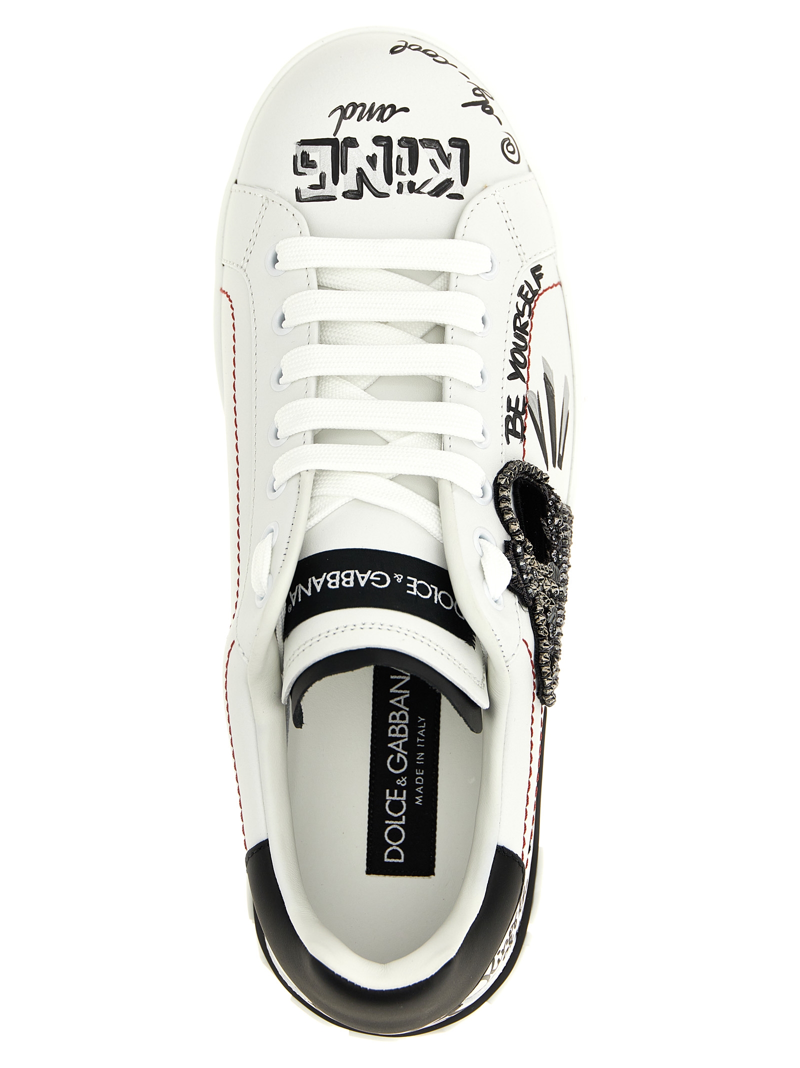 ‘Portofino’ leather sneakers with hand-painted lettering and side jewel detail, lace-up closure, logo rubber sole.