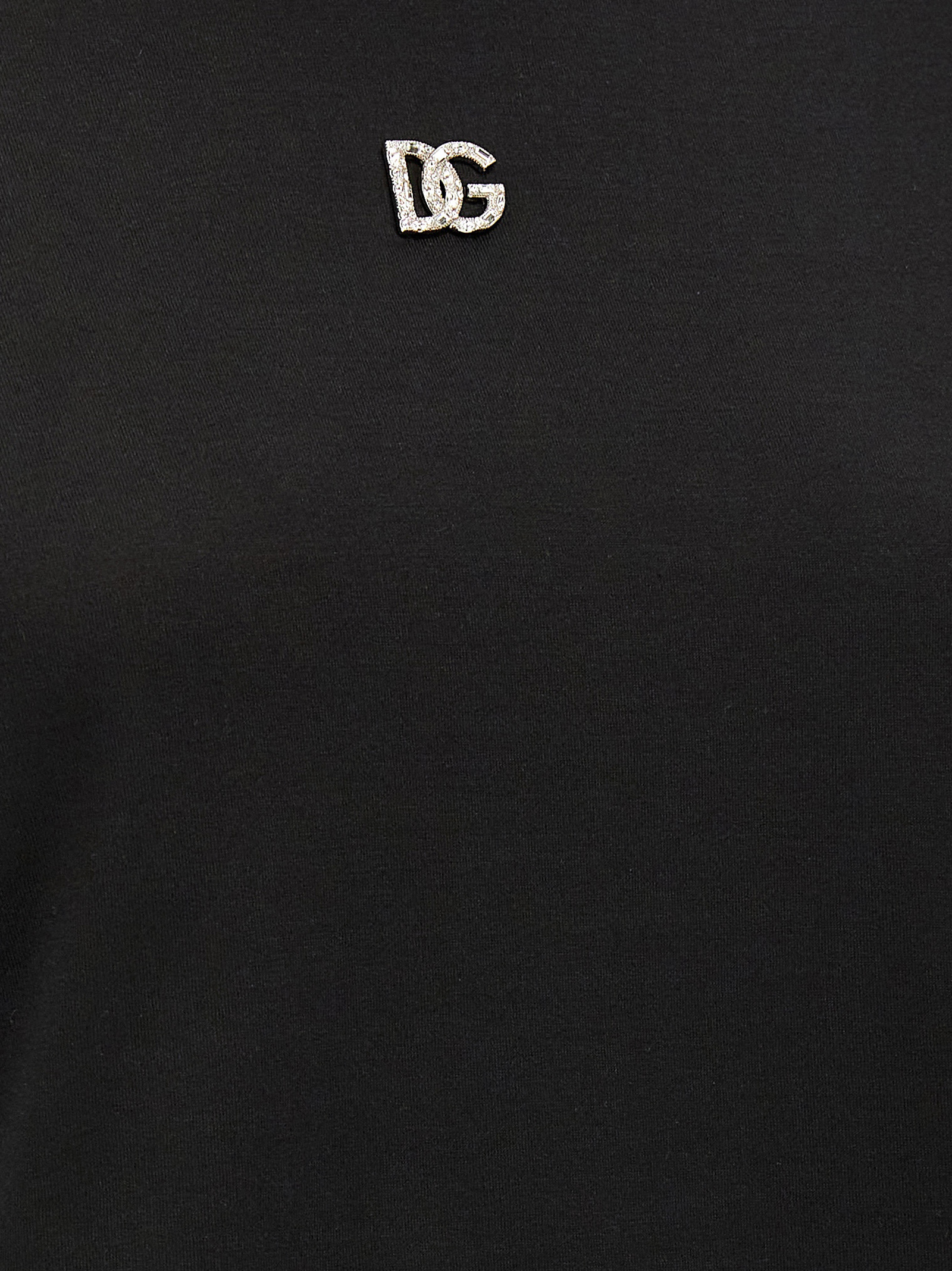 Cotton t-shirt with rhinestone logo appliqué on the front, Crew neck, Short sleeves.