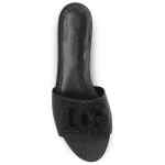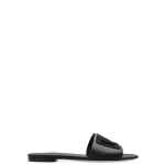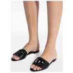black logo appliqué open toe flat sole DG Logo leather flat sandals
