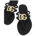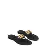 black and yellow gold-tone hardware thong strap logo plaque flat sole