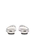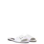 Black calf leather DG Millennials logo slides from DOLCE & GABBANA featuring embossed logo to the front, cut-out detailing, almond toe, branded insole and flat rubber sole. This piece fits small – take one size up. DG Logo leather flat sandals