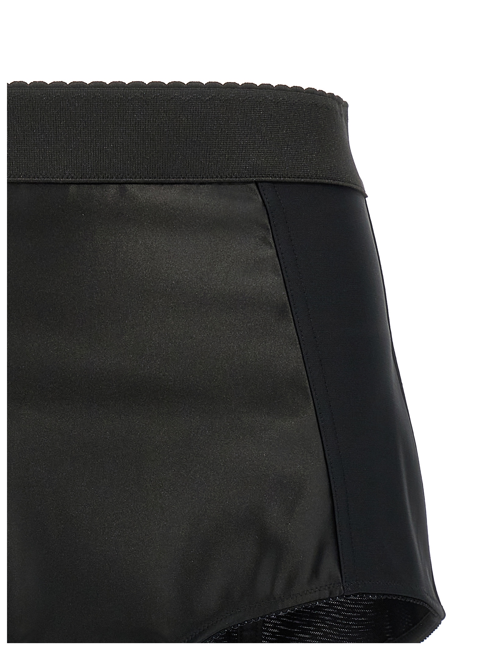 Satin culottes, High waisted model with elastic torso, Elastic marquisette, Back zip closure.