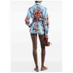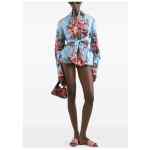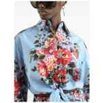 sky blue floral print front tie detail button fastening long sleeves buttoned cuffs Flower print cotton shirt