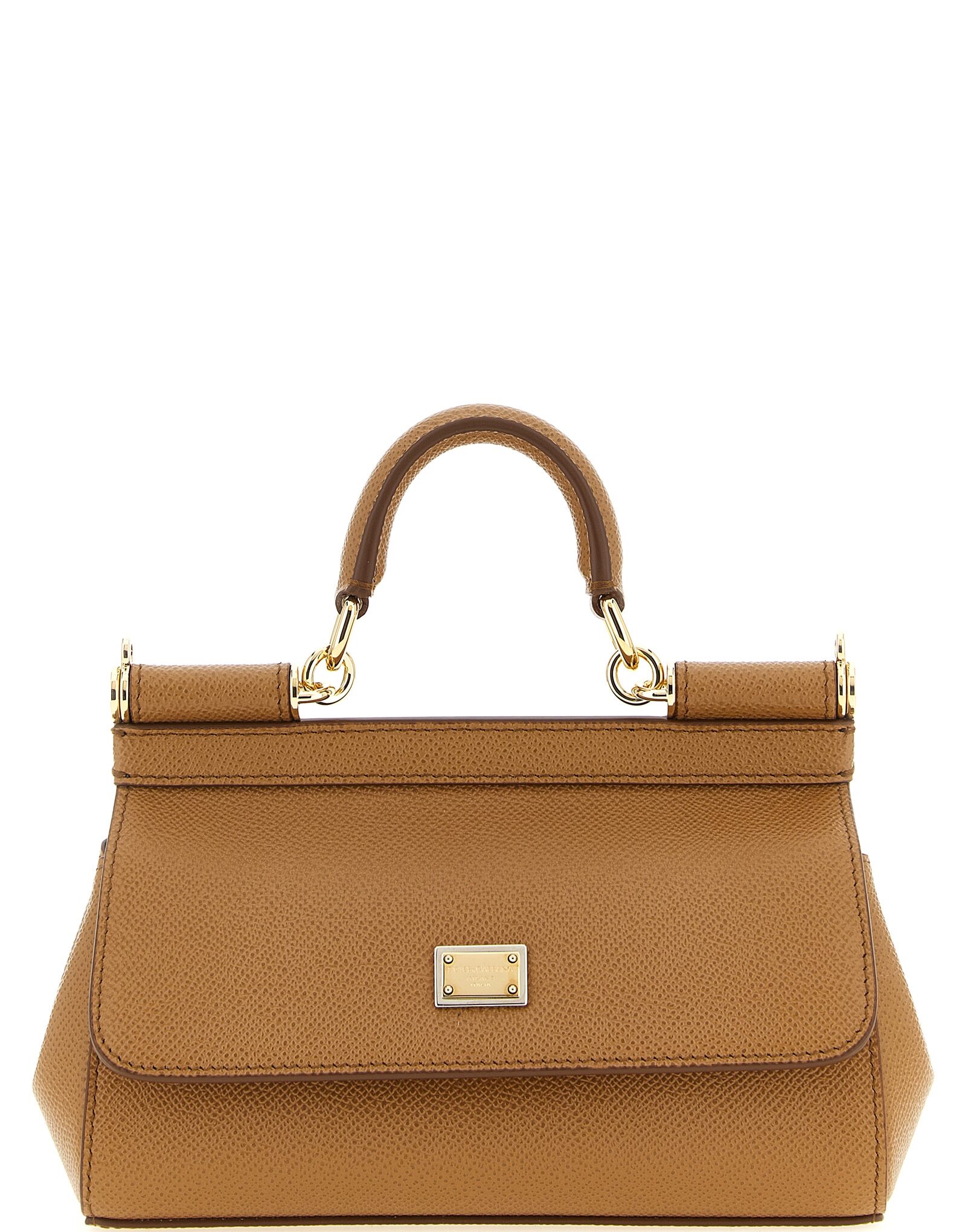 Small ‘sicily’ dauphine calf leather handbag, Flap closure with metal snap mechanism and front bigalvanic logo tag, Fixed handle, Metal details, Printed fabric lining, Adjustable and removable shoulder strap.