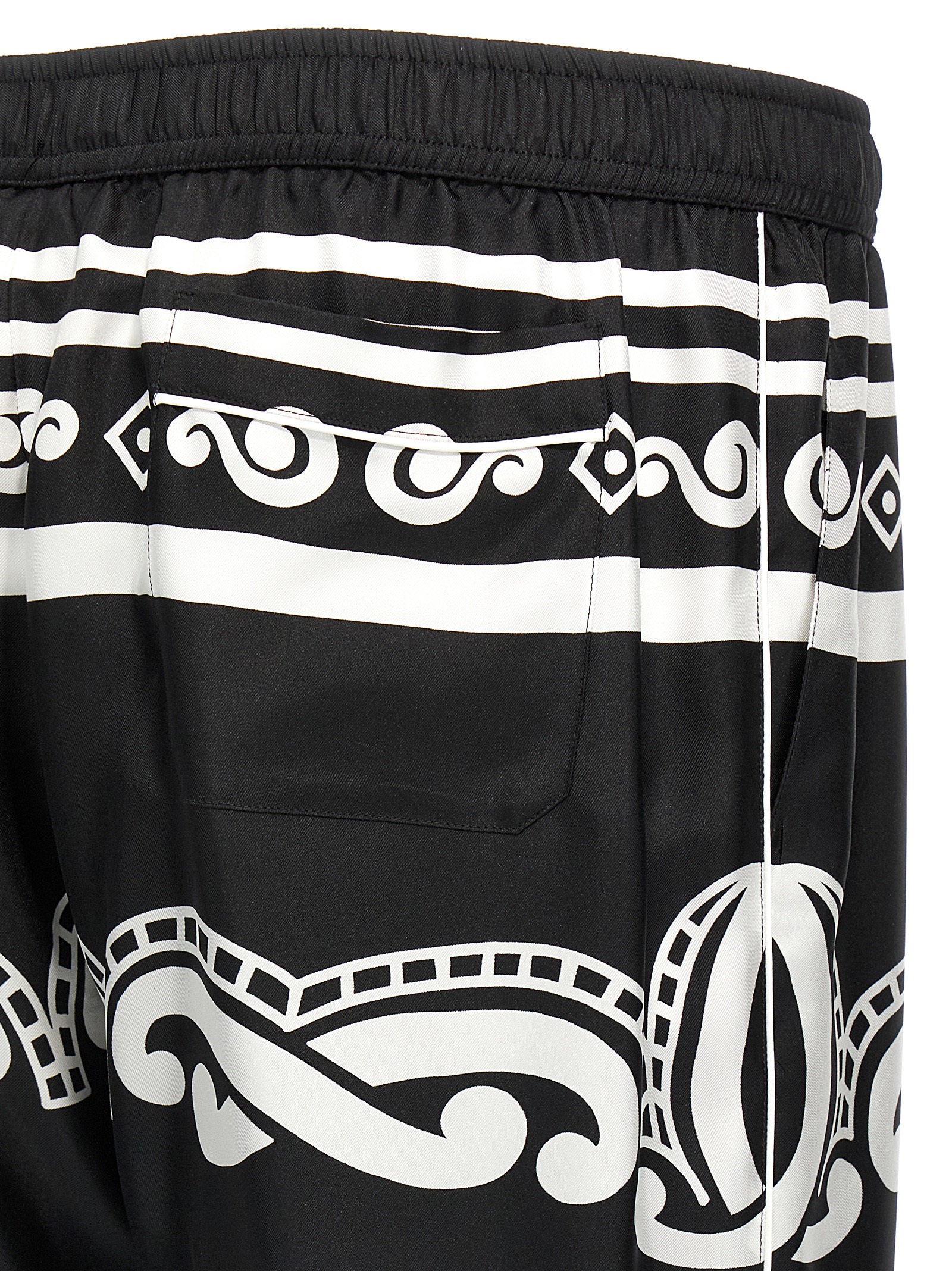 Bandana-print silk pajama pants, contrast piping details, adjustable drawstring elastic waistband, pockets._x000D_