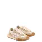 ivory pink panelled design logo lettering round toe lace-up fastening