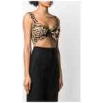 leopard brown cotton sweetheart neck front bow fastening leopard print back zip fastening Leopard print bustier top