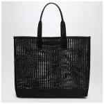 Dolce & Gabbana woven shopping bag in black calfskin, featuring two top handles and a ribbon detail on the front with logo lettering.