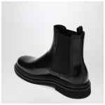 Dolce & Gabbana black leather ankle boot, characterized by a round toe, elasticated side bands, and a rubber sole.