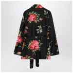 Black silk twill Dolce & Gabbana shirt with contrasting floral print, featuring two front patch pockets, front button fastening, long sleeves, matching waist tie belt and V-neck with wide lapels.