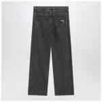 Dolce & Gabbana black washed-effect cotton denim jeans, featuring front zip and button closure, belt loops, small lettering logo patch on the front, five classic pockets, branded metal tag on the back, pressed front crease and oversized fit.