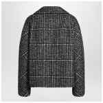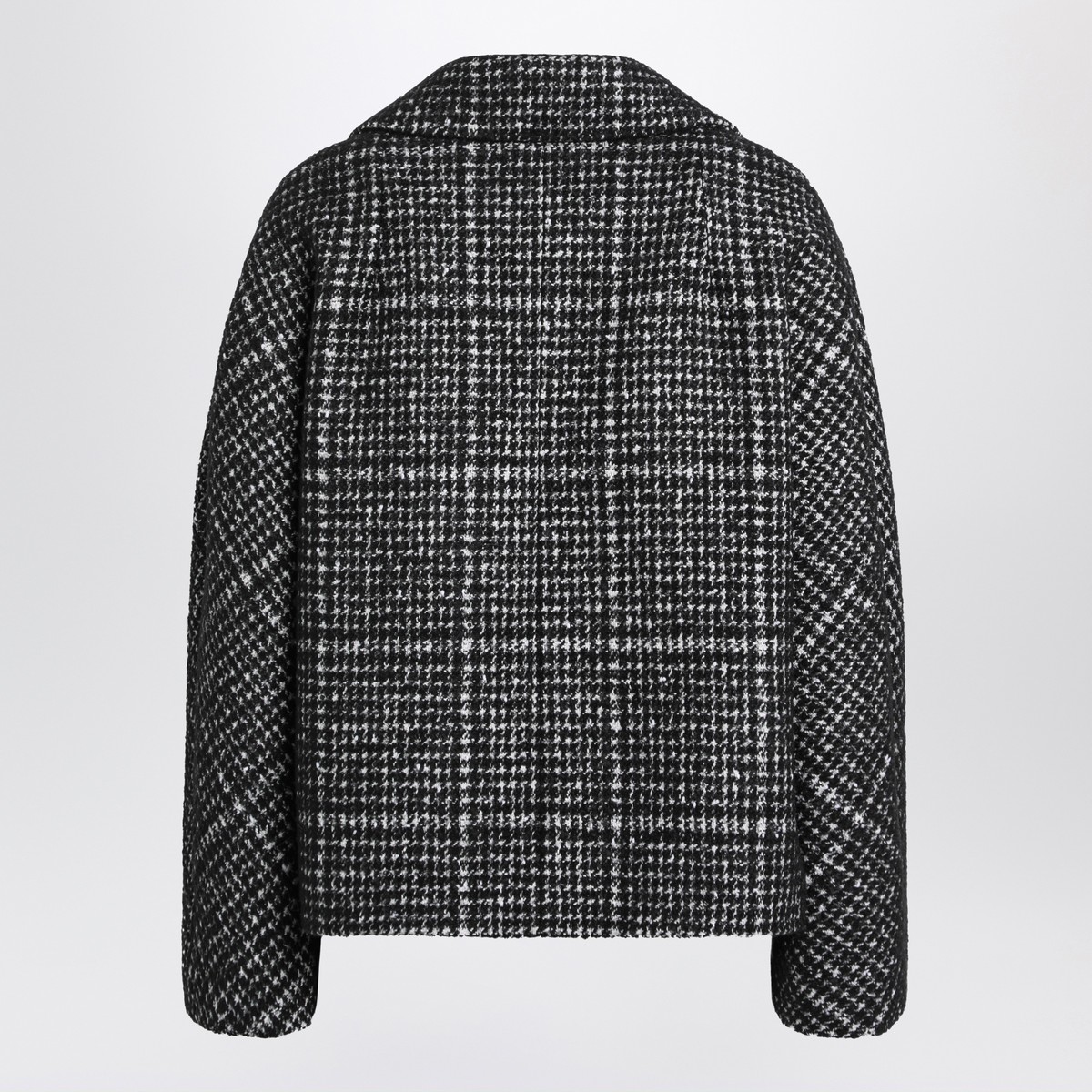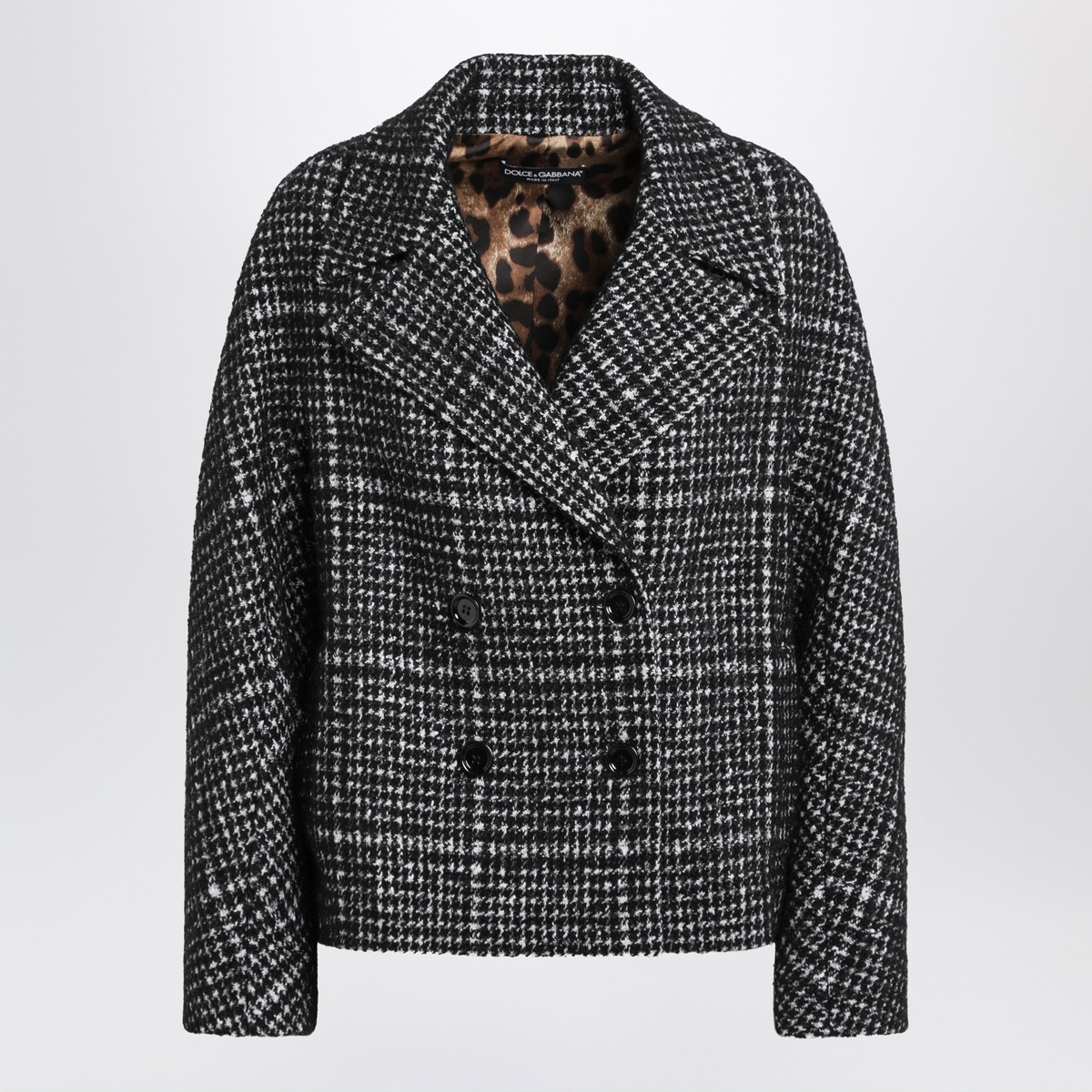 Dolce & Gabbana double-breasted jacket in black and white wool-silk blend pied de poule, featuring wide lapels, front button closure, wide long sleeves, and two side welt pockets.