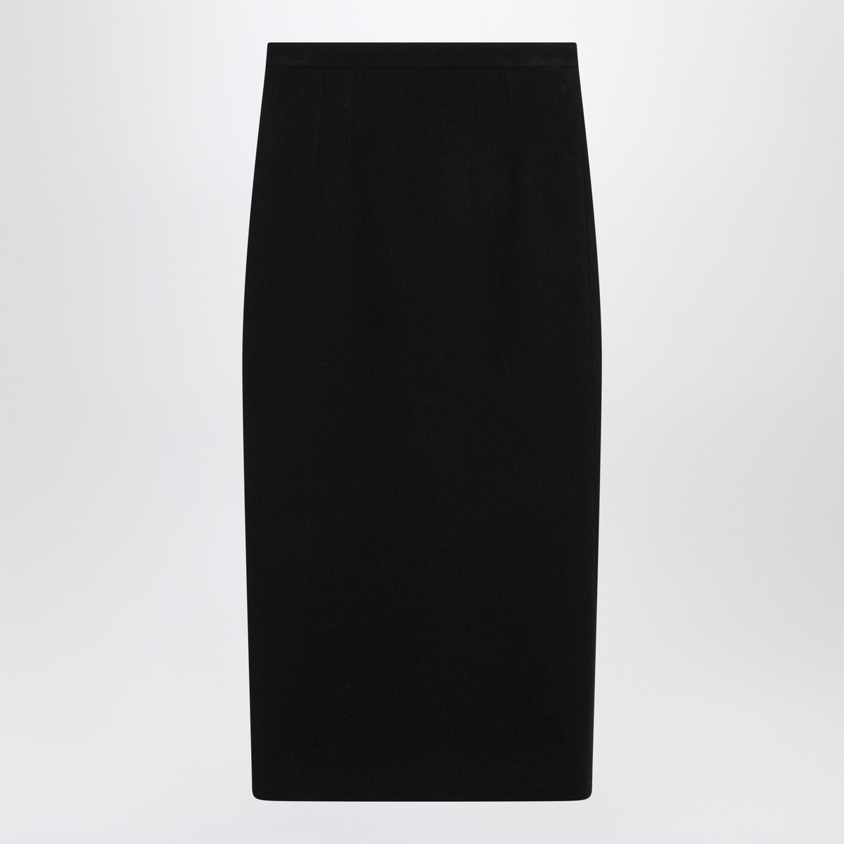Dolce & Gabbana pencil skirt in black wool cloth, featuring high waist, back zip closure, and back slit.