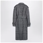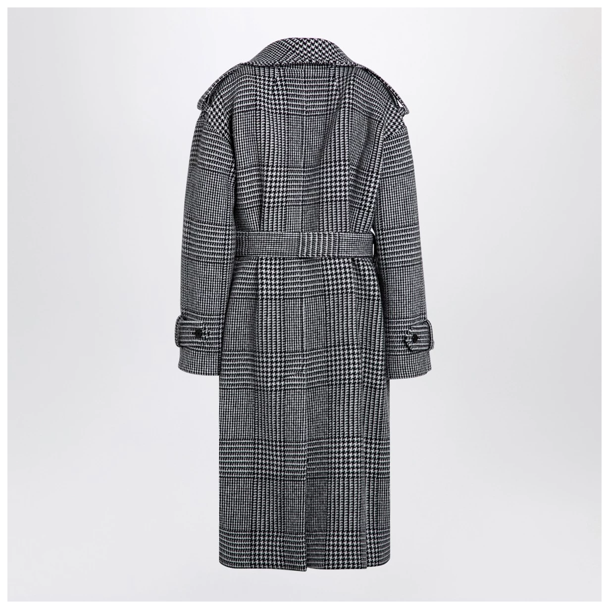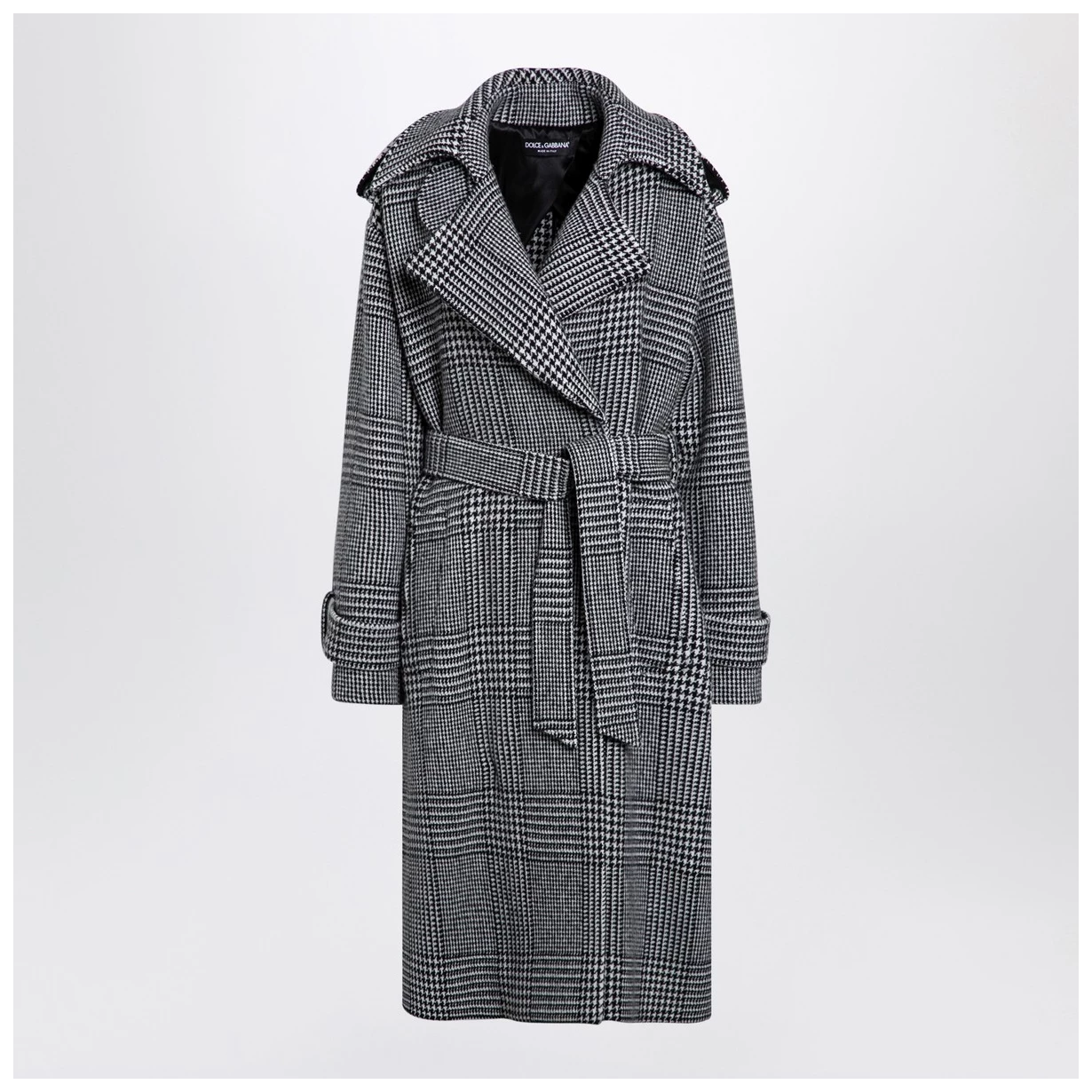 Double-breasted coat by Dolce & Gabbana in Houndstooth wool featuring a grey check pattern, notched lapels, a matching waistband, side welt pockets, long sleeves with adjustable cuffs and a central back vent.