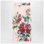 Colourful floral print viscose blend longuette skirt from Dolce & Gabbana featuring a high waist, a back zip fastening and a back slit.